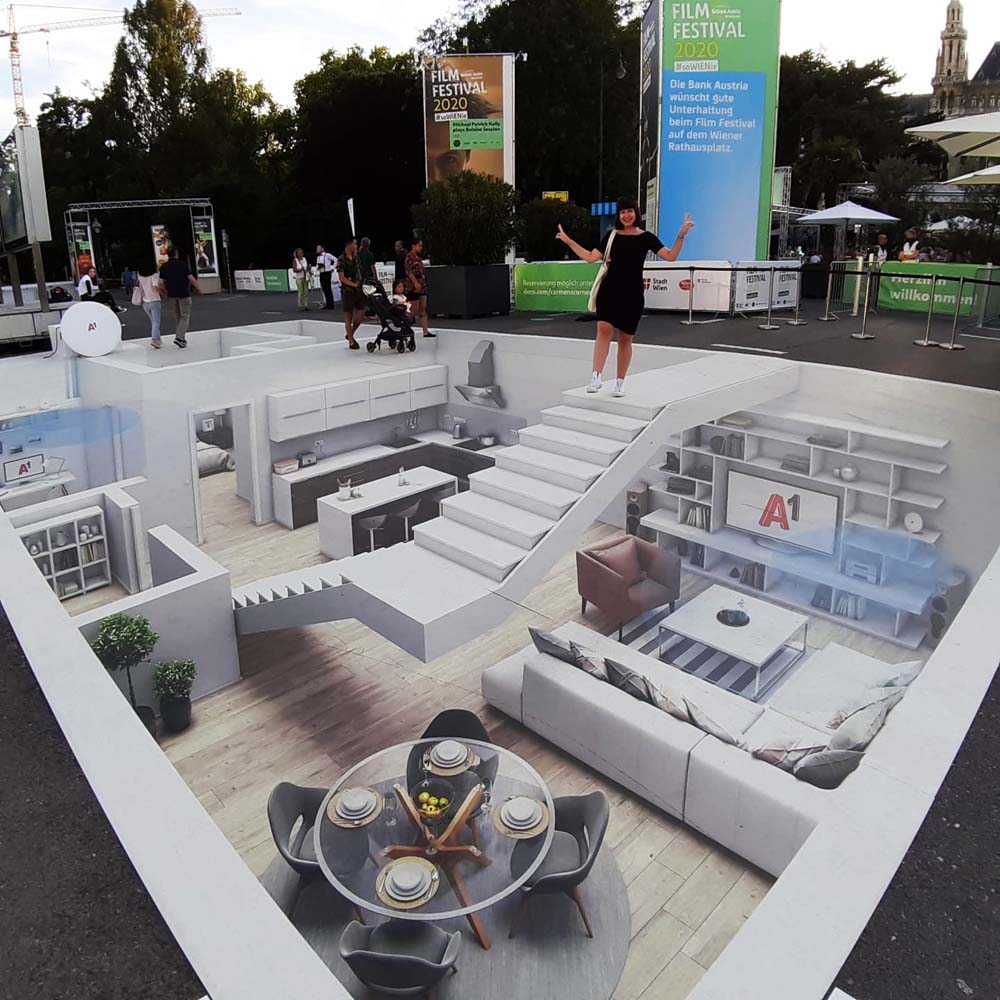 Innovative Technologien verdienen innovative Werbemaßnahmen. Unter diesem Motto stand die Zusammenarbeit mit A1. Ein 3D Experience, welches vorübergehend auf dem Rathauspatz erlebt werden konnte, mit dem Ziel , die neue "Mesh WLAN-Technologie" zu bewerben.