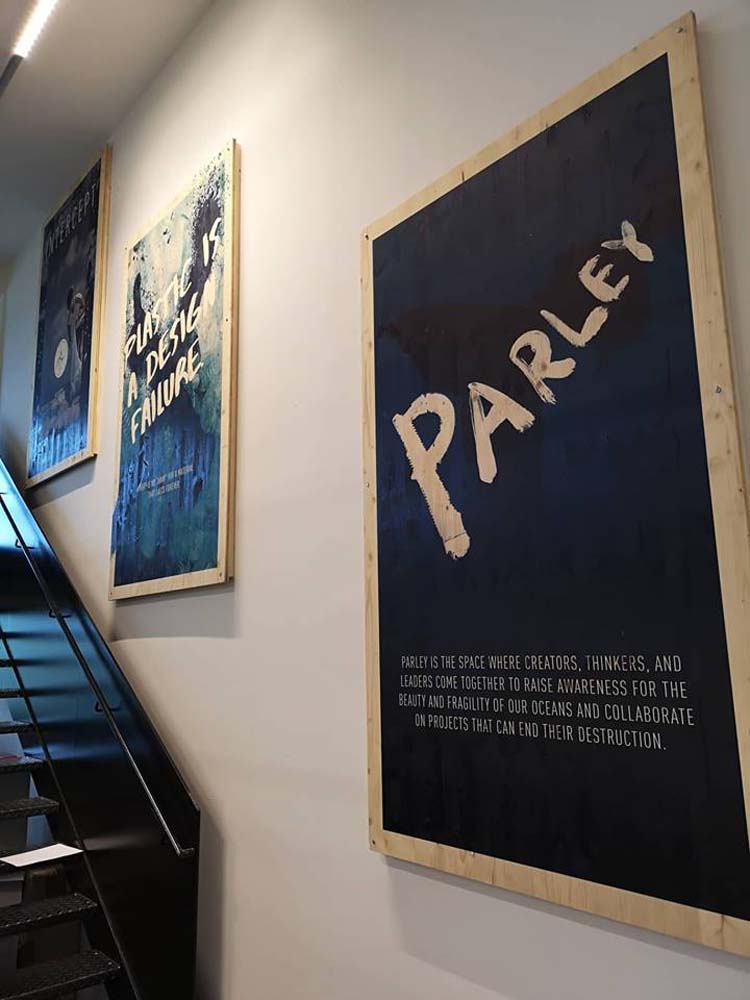 Dort wird eindrucksvoll aufgezeigt, welches Problem der Kunststoffabfall im Meer darstellt und wie adidas Vorreiter in der Verwertung dieses Meeresmülls ist die Schuhserie PARLEY wird mittlerweile zum größten Teil aus diesem Meeresmüll produziert und weiterverwertet. Es gelingt uns mit eindrucksvollen Kunstwerken aus Kunststoffabfall dies darzustellen und in der Begleitung von Workshops zu unterstützen.