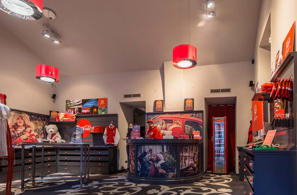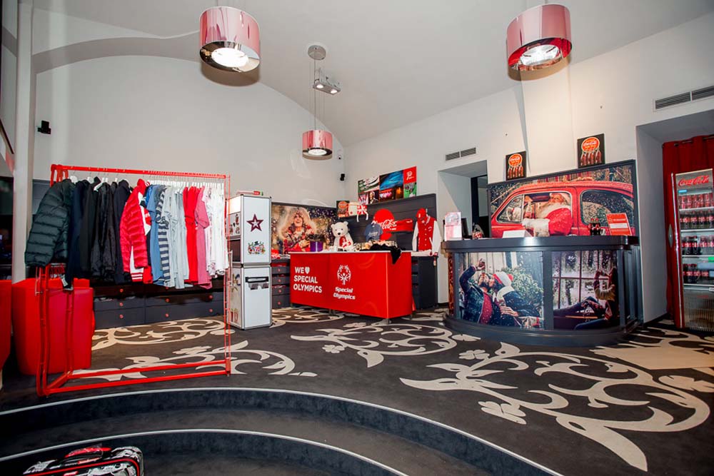 Eine Boutique mitten in der Innenstadt verwandelt sich in der Vorweihnachtszeit zum Coca Cola Pop Up Fan Store.