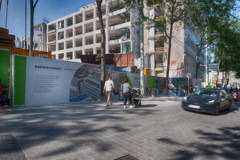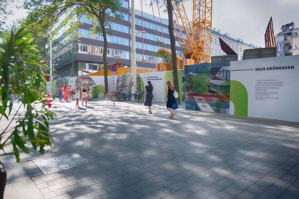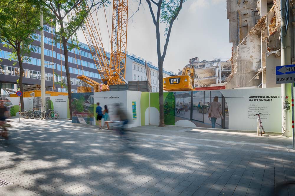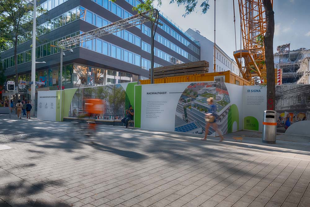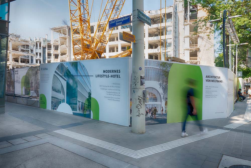 In der Wiener Mariahilferstraße 10-18 entsteht ein neues und einzigartiges Projekt. Signa arbeitet seit dem Frühjahr 2021 an der Umsetzung einer außergewöhnlichen Kombination von Einkaufszentrum und Lifestyle Hotel, welches an dieser Adresse entstehen wird. Nicht nur neue Einkaufsmöglichkeiten sollen hier entstehen, es soll zukünftig auch ein umfangreiches gastronomisches Angebot und eine Begegnungszone zu finden sein. Ein Highlight ist der geplante, öffentlich zugängliche Park am Dach der Immobilie von dort aus man einen fantastischen Panorama Blick über große Teile Wiens genießen kann.