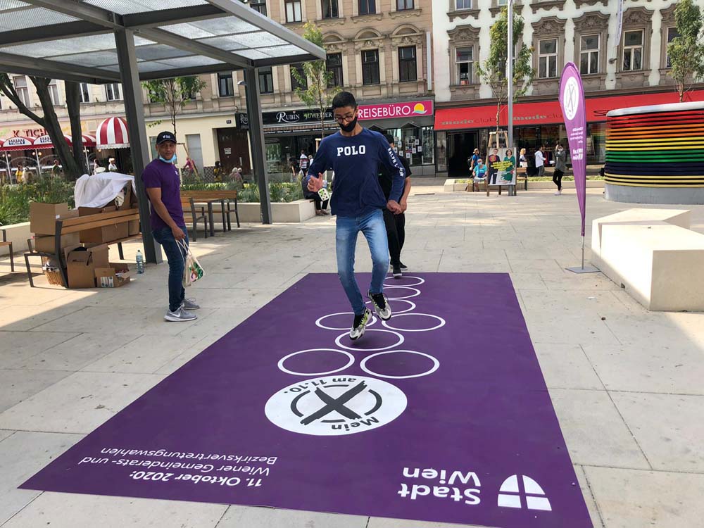 Spielerisch für die Wahlteilnahme zu werben in den bevölkerungsstarken Bezirken Wiens wird für alle Altersgruppen zum Erlebnis.
