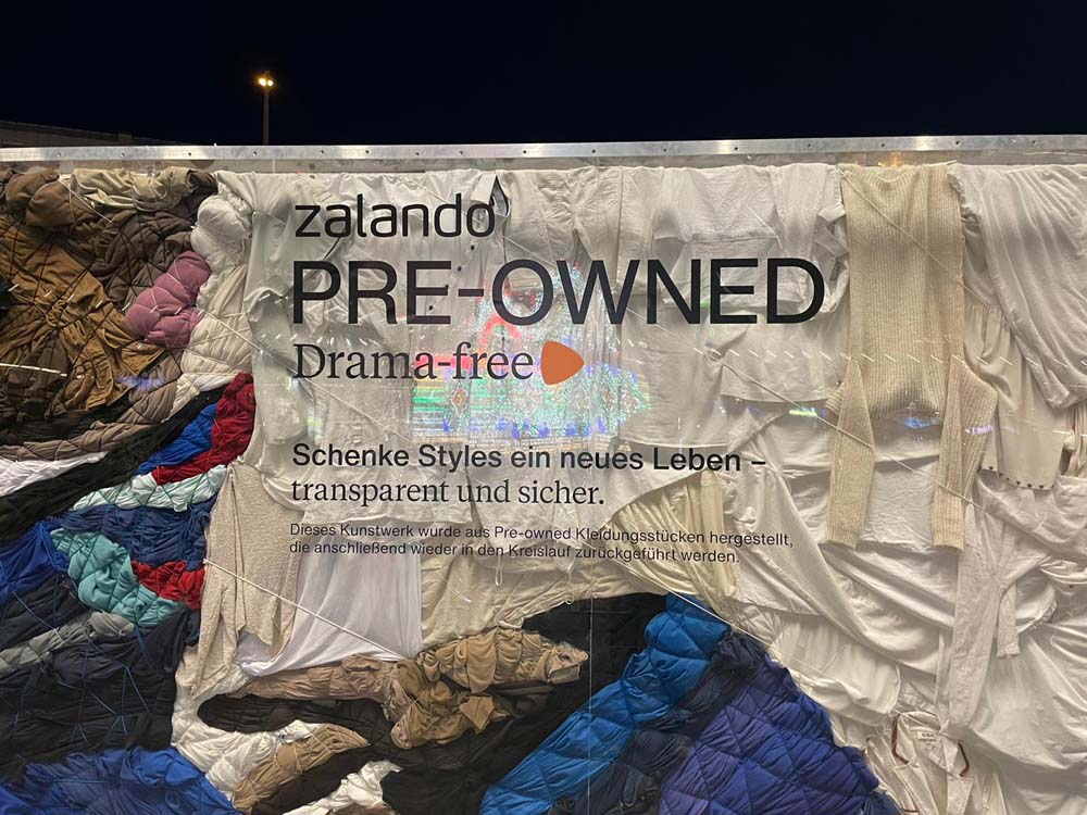 Die Herausforderung war es hier, den Nachhaltigkeitsaspekt zu berücksichtigen. Die Kleidung aus denen die Motive künstlerisch nachgestellt wurden, wurden nämlich nach Ende der Kampagne von den Werbeflächen entfernt und wieder der Pre-owned Angebotspalette von Zalando hinzugefügt, um wieder weiter verwendet zu werden. Dies hat uns vor einigen Herausforderungen gestalterischer Art gestellt, gleichzeitig musste sie aber auch von unterschiedlichen Wetterverhältnissen geschützt werden.